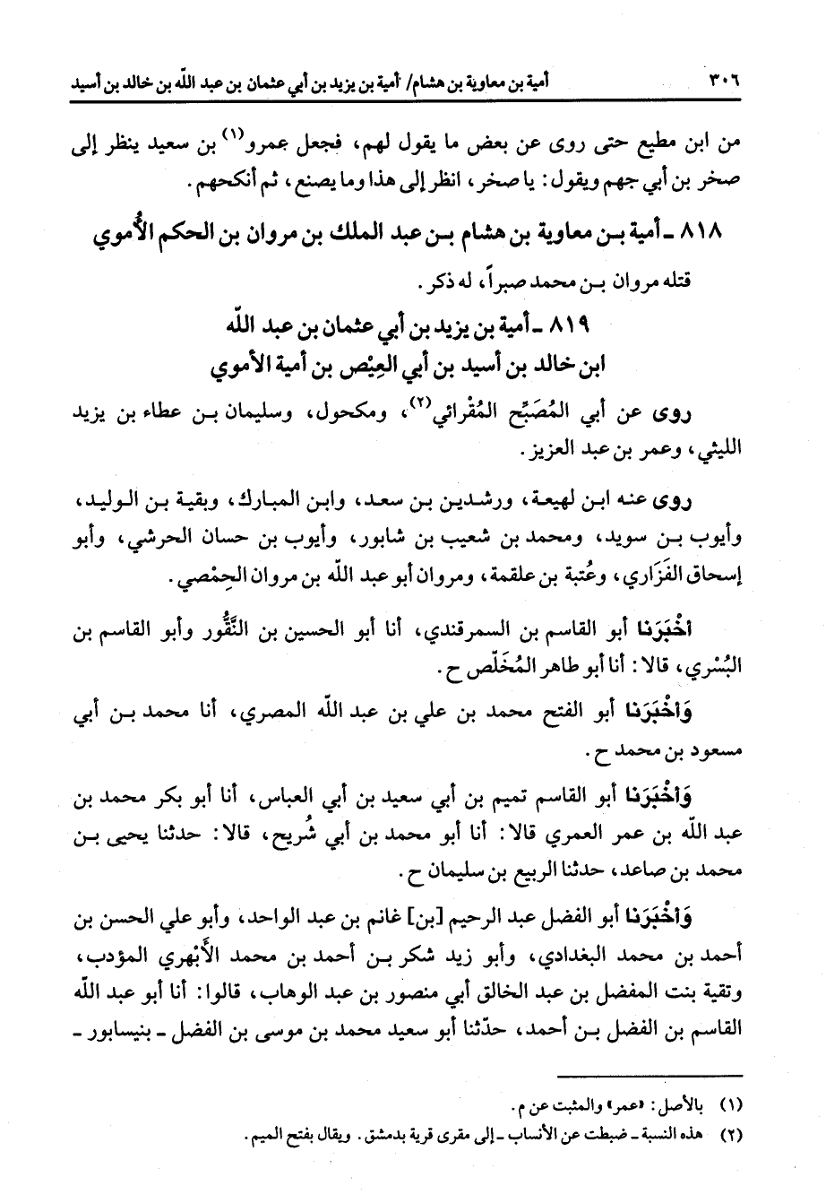 818 - أمية بن معاوية بن هشام بن عبد الملك بن مروان بن الحكم الأموي قتله مروان بن محمد صبرا له ذكر