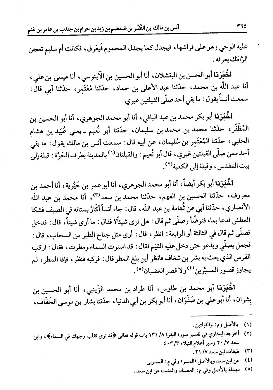 (2) أخرجه البخاري في تفسير سورة البقرة 8 / 131 باب قوله تعالى (قد نرى تقلب وجهك في السماء) وابن سعد 7 / 20 وسير أعلام النبلاء 3 / 403