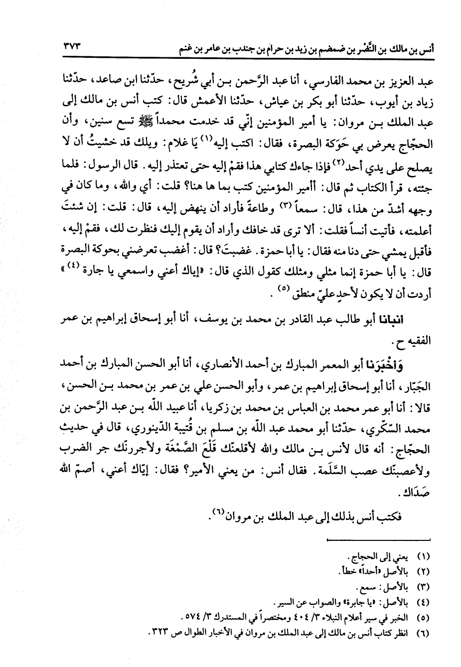 (6) انظر كتاب أنس بن مالك إلى عبد الملك بن مروان في الأخبار الطوال ص 323