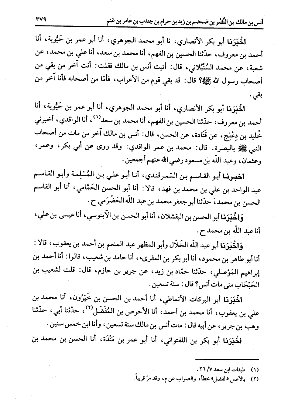 (1) طبقات ابن سعد 7 / 26