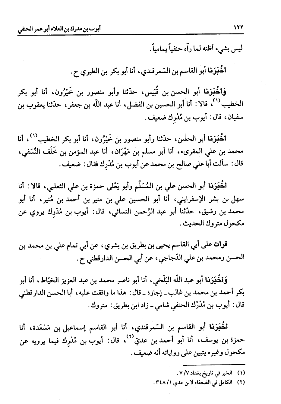 (2) الكامل في الضعفاء لابن عدي 1 / 348