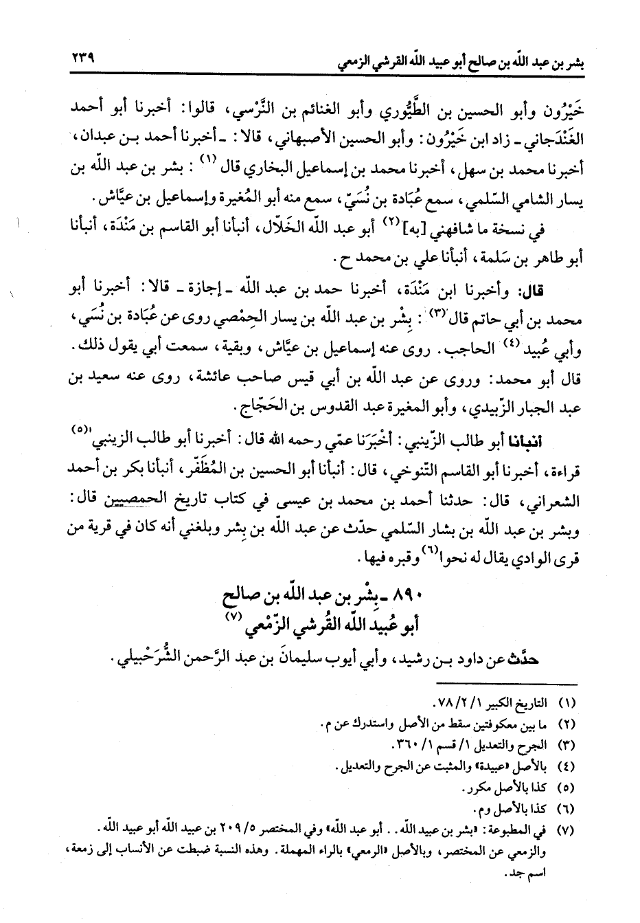 890 - بشر بن عبد الله بن صالح أبو عبيد الله القرشي الزمعي (7) حدث عن داود بن رشيد وأبي أيوب سليمان بن عبد الرحمن الشرحبيلي