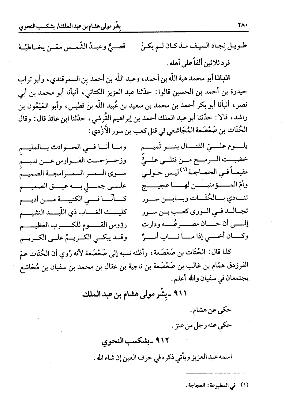 911 - بشر مولى هشام بن عبد الملك حكى عن هشام حكى عنه رجل من عنز