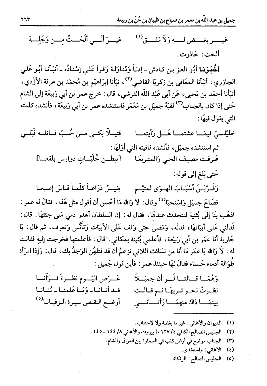 (2) الجليس الصالح الكافي 4 / 127 ط بيروت والاغاني 8 / 144 - 145