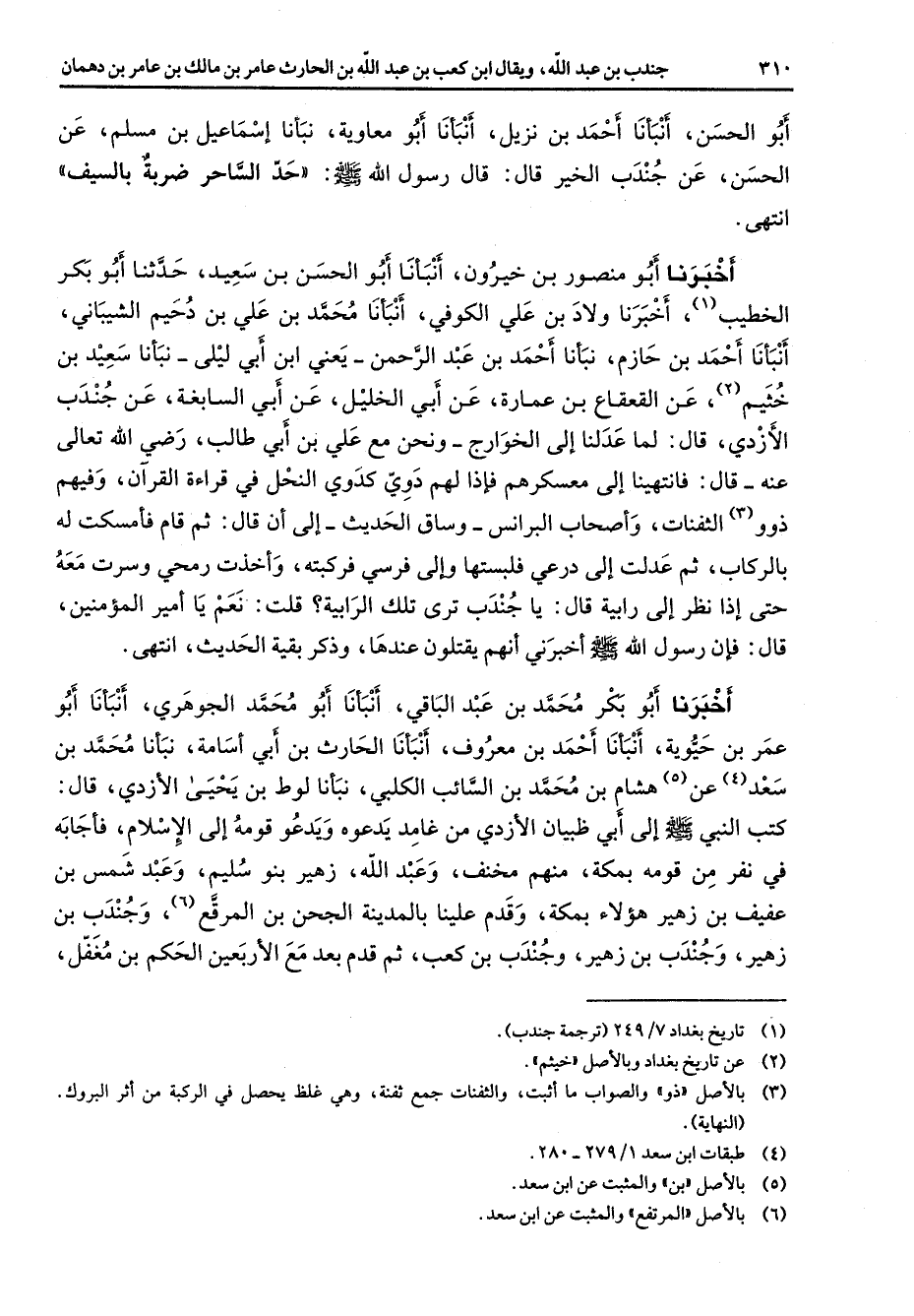 (1) تاريخ بغداد 7 / 249 (ترجمة جندب)