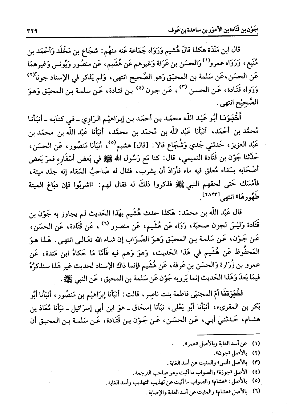(6) بالاصل " هشام " والمثبت عن أسد الغابة والاصابة