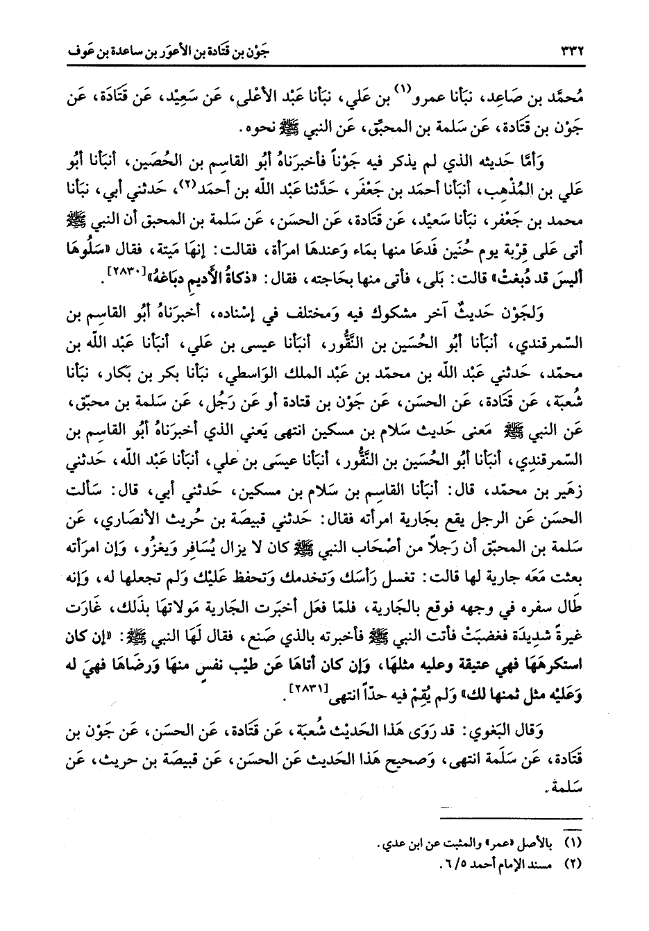 [2831] وقال البغوي قد روى هذا الحديث شعبة عن قتادة عن الحسن عن جون بن قتادة عن سلمة انتهى وصحيح هذا الحديث عن الحسن عن قبيصة بن حريث عن سلمة