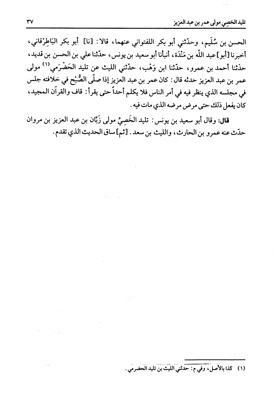 (1) كذا بالاصل وفي م: حدثني الليث بن تليد الحضرمي
