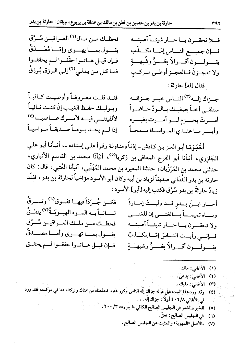 (5) الخبر والشعر في الجليس الصالح الكافي 7 بيروت 3 / 200