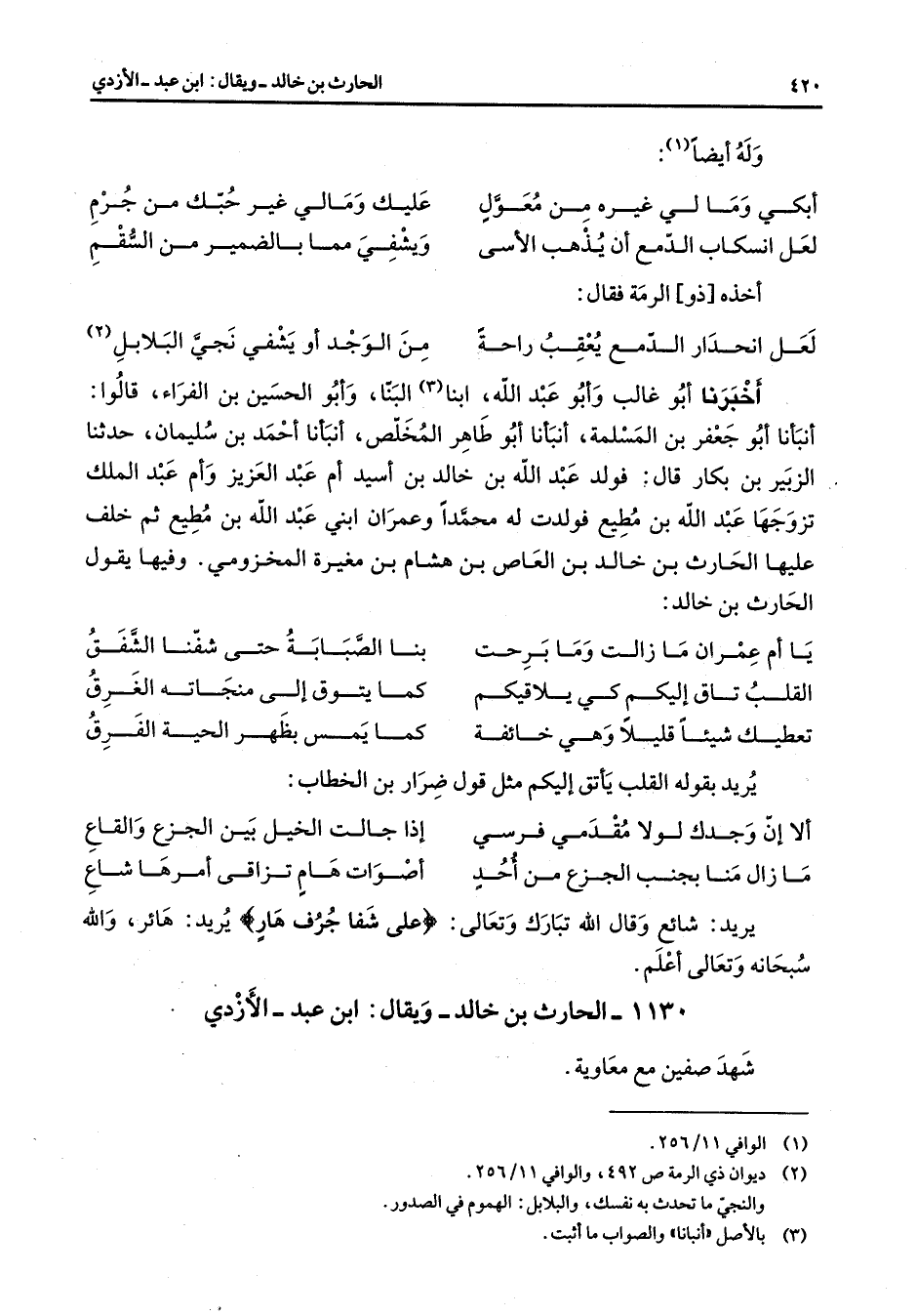 1130 - الحارث بن خالد ويقال ابن عبد الأزدي شهد صفين مع معاوية