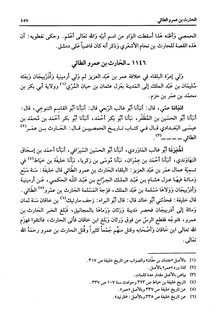 (5) عن تاريخ خليفة ص 337 وبالاصل " عمر "