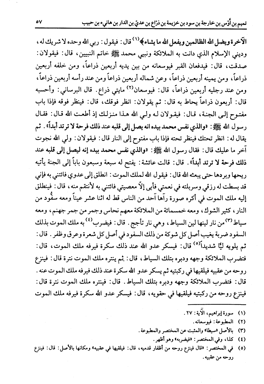 (5) في المختصر: " قال فينتزع روحه من أظفار قدميه قال: فيلقيها في عقبيه " ومكانها بالاصل: قال: فينزع روحه من عقبيه