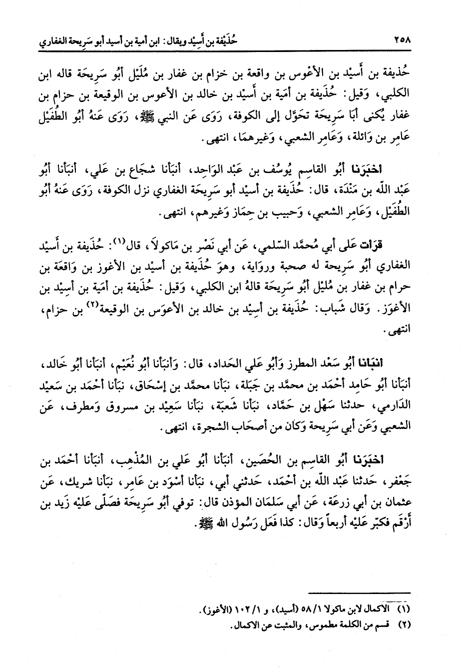 (1) الاكمال لابن ماكولا 1 / 58 (أسيد) و 1 / 102 (الاغوز *
