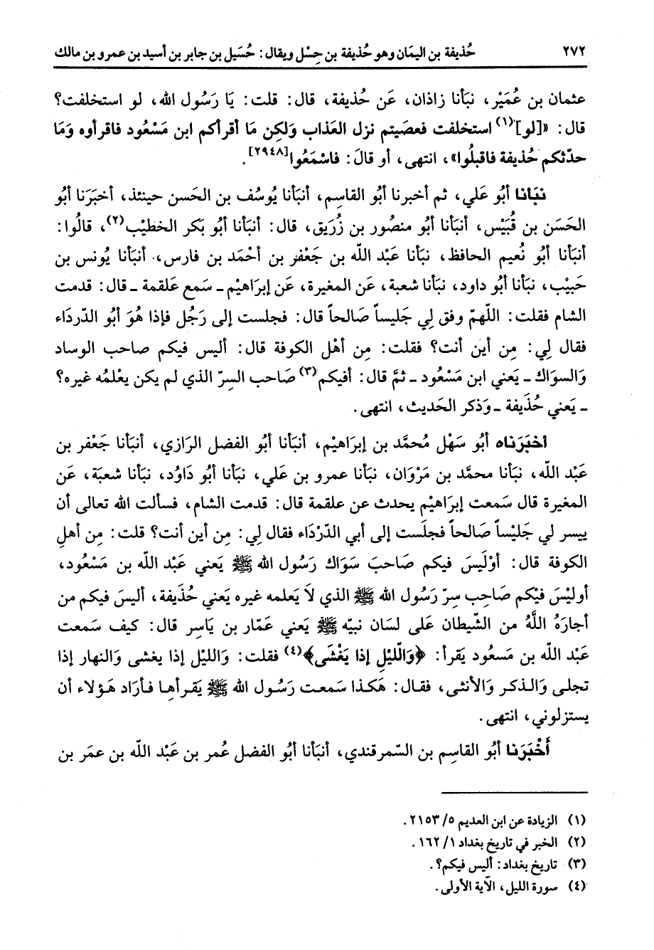 (3) تاريخ بغداد: أليس فيكم؟ (4) سورة الليل الآية الأولى