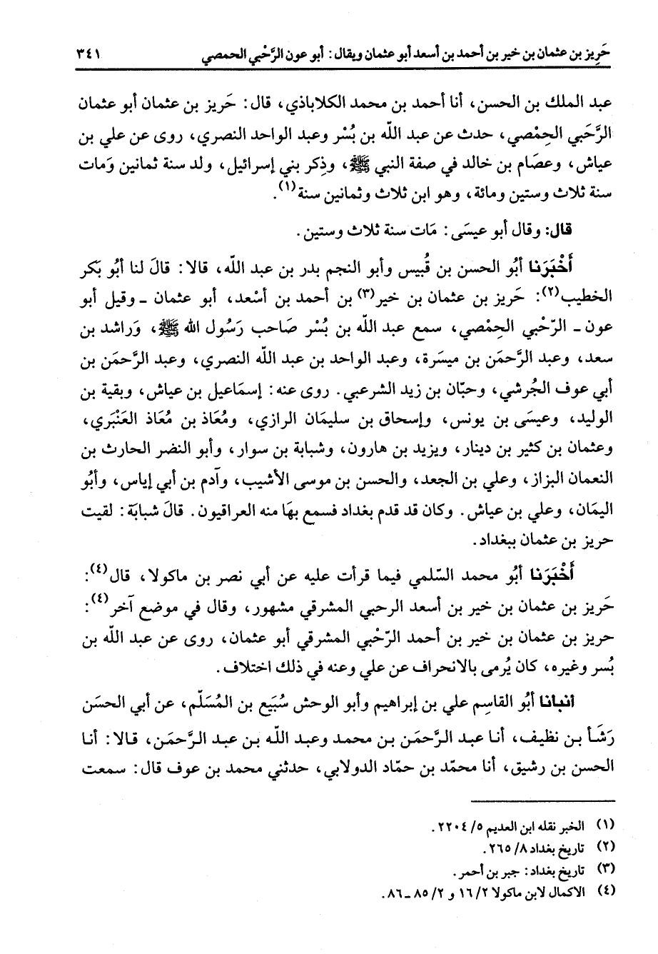 (4) الاكمال لابن ماكولا 2 / 16 و 2 / 85 - 86