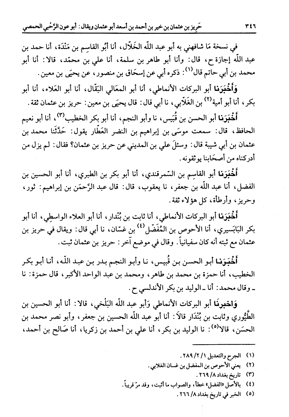(5) الخبر في تاريخ بغداد 8 / 266