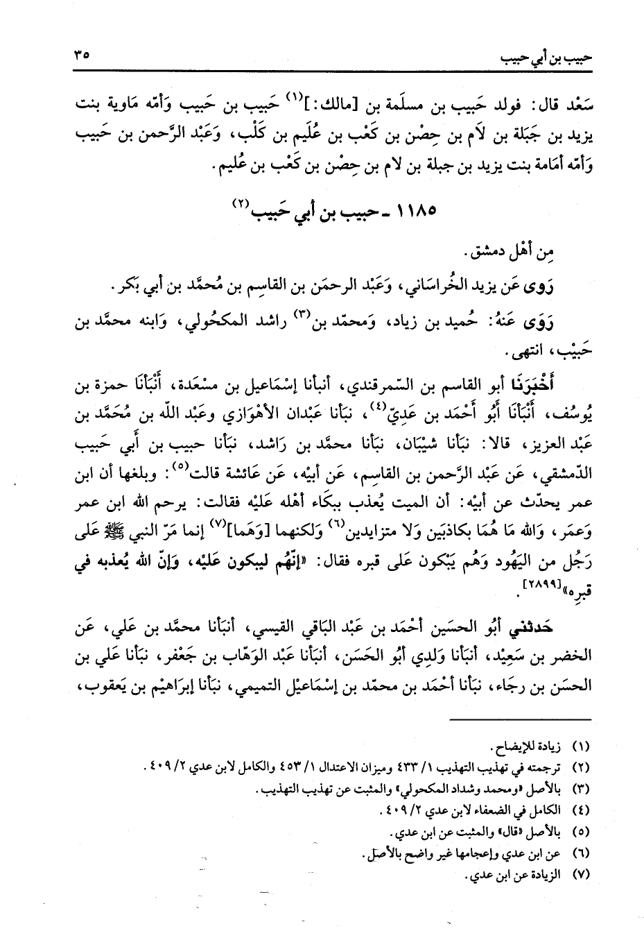 (7) الزيادة عن ابن عدي
