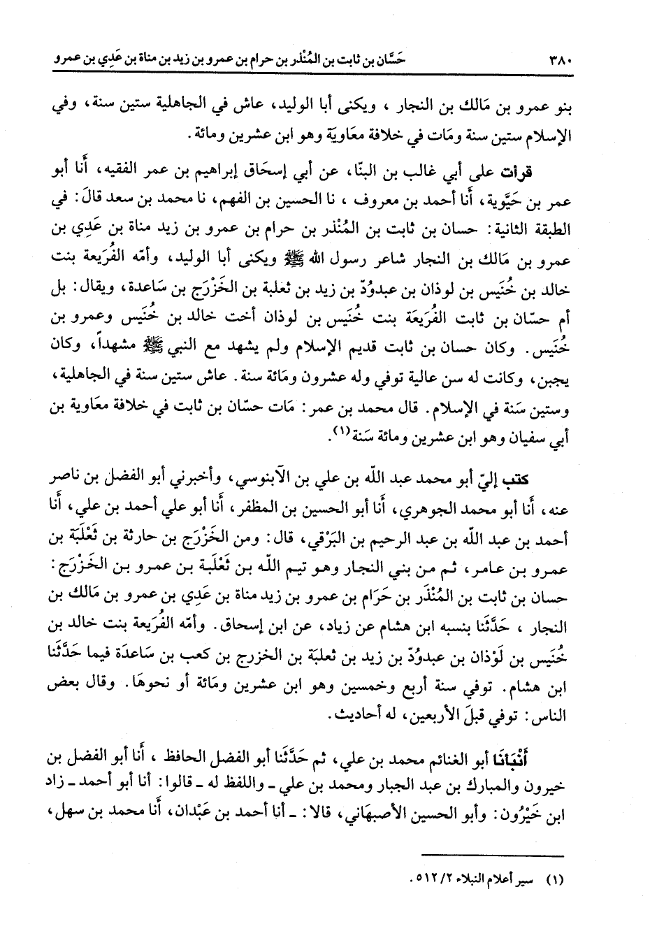 (1) سير أعلام النبلاء 2 / 512