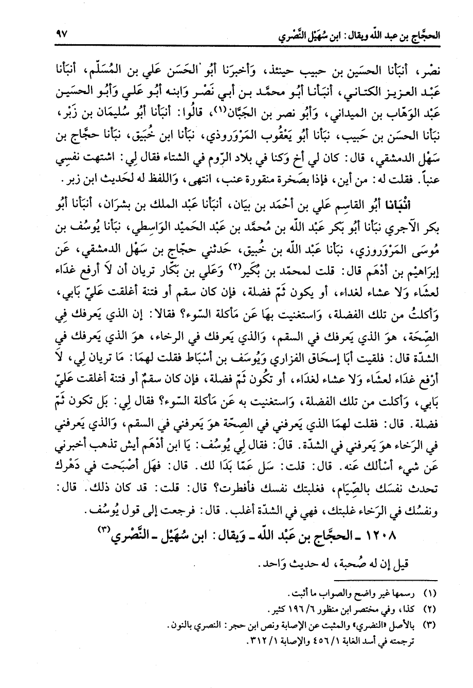 1208 - الحجاج بن عبد الله ويقال ابن سهيل النصري (3) قيل إن له صحبة له حديث واحد