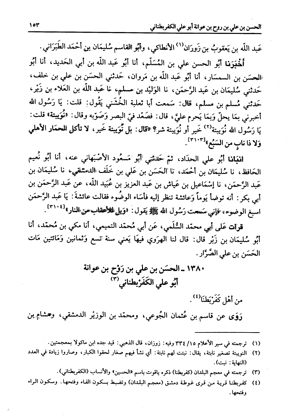 1380 - الحسن بن علي بن روح بن عوانة أبو علي الكفر بطناني (3) من أهل كفربطنا (4)