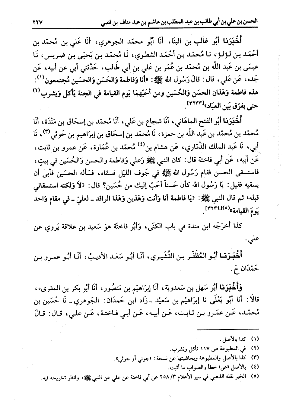 (5) الخبر نقله الذهبي في سير الاعلام 2 / 258 عن أبي فاختة عن علي عن النبي صلى الله عليه وآله وسلم وانظر تخريجه فيه