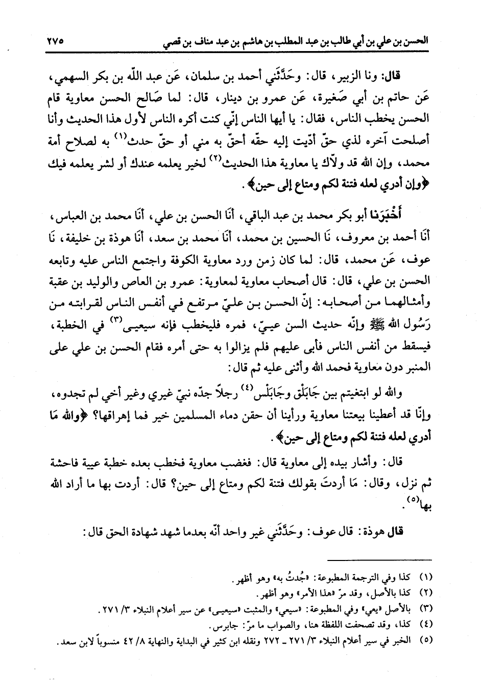 (5) الخبر في سير أعلام النبلاء 3 / 271 - 272 ونقله ابن كثير في البداية والنهاية 8 / 42 منسوبا لابن سعد