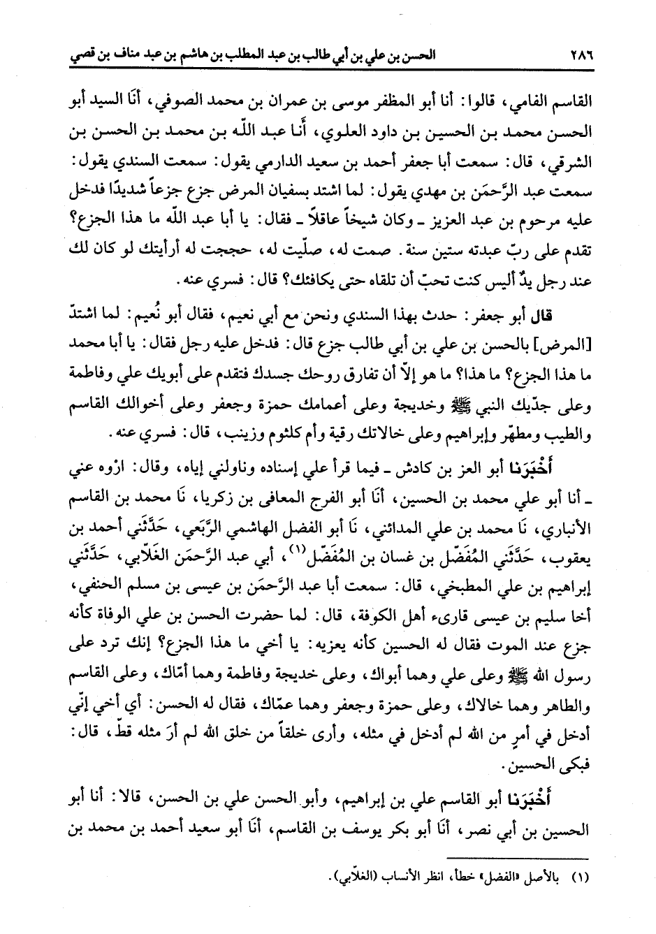 (1) بالاصل " الفضل " خطأ انظر الانساب (الغلابي)
