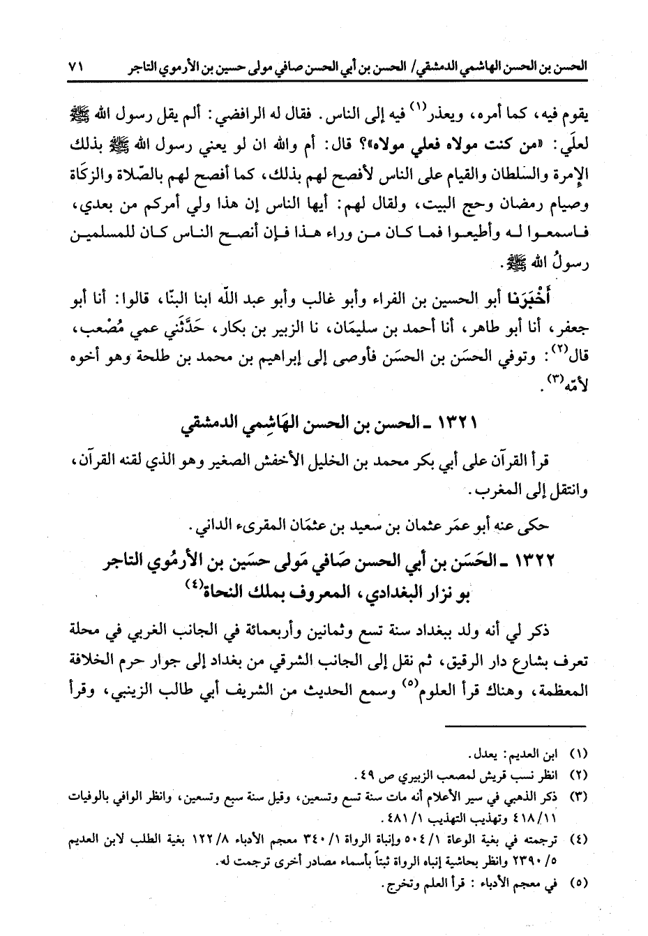 1321 - الحسن بن الحسن الهاشمي الدمشقي قرأ القرآن على أبي بكر محمد بن الخليل الأخفش الصغير وهو الذي لقنه القرآن وانتقل إلى المغرب حكى عنه أبو عمر عثمان بن سعيد بن عثمان المقرئ الداني