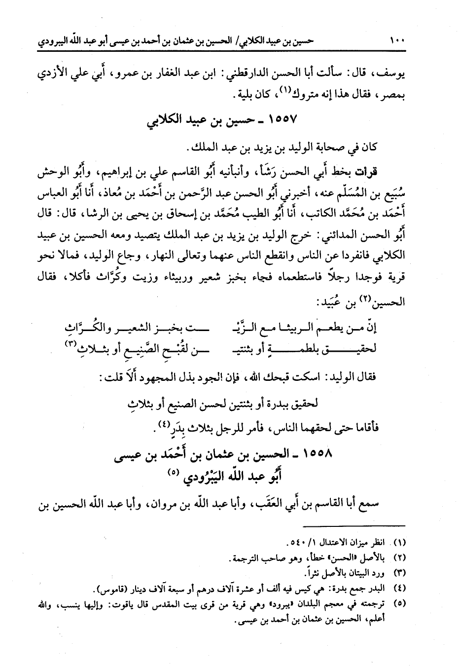 (5) ترجمته في معجم البلدان " يبرود " وهي قرية من قرى بيت المقدس قال ياقوت: وإليها نسب والله أعلم الحسين بن عثمان بن أحمد بن عيسى