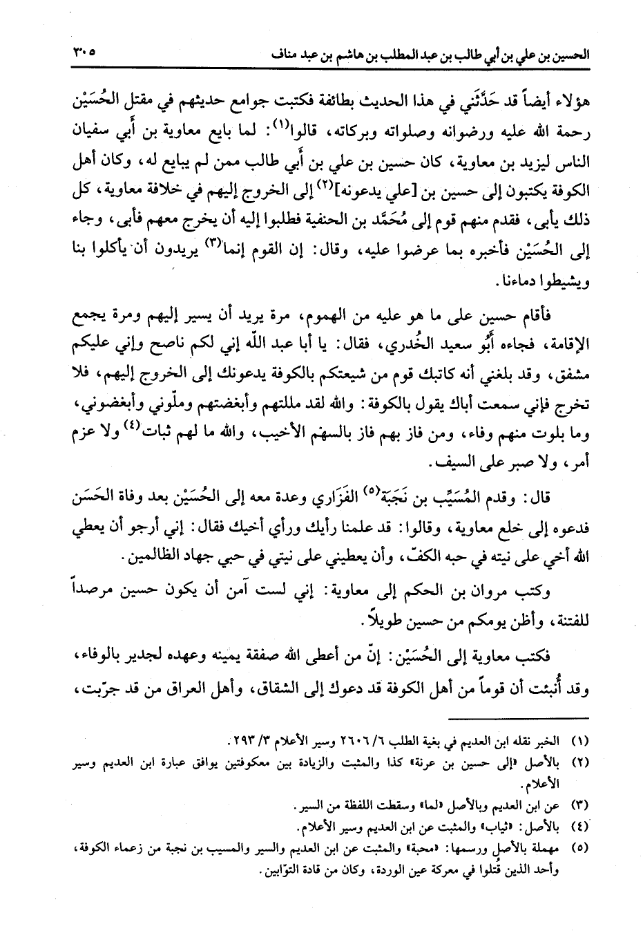 هؤلاء أيضا قد حدثني في هذا الحديث بطائفة فكتبت جوامع حديثهم في مقتل الحسين رحمة الله عليه ورضوانه وصلواته وبركاته قالوا (1) لما بايع معاوية بن أبي سفيان الناس ليزيد بن معاوية كان حسين بن علي بن أبي طالب ممن لم يبايع له وكان أهل الكوفة يكتبون إلى حسين بن علي يدعونه (2) إلى الخروج إليهم في خلافة معاوية كل ذلك بأبي فقدم منهم قوم إلى محمد بن الحنفية فطلبوا إليه أن يخرج معهم فأبى وجاء إلى الحسين فأخبره بما عرضوا عليه وقال إن القوم إنما (3) يريدون أن يأكلوا بنا ويشيطوا دماءنا فأقام حسين على ما هو عليه من الهموم مرة يريد أن يسير إليهم ومرة يجمع الإقامة فجاءه أبو سعيد الخدري فقال يا أبا عبد الله إني لكم ناصح وإني عليكم مشفق وقد بلغني أنه كاتبك قوم من شيعتكم بالكوفة يدعونك إلى الخروج إليهم فلا تخرج فإني سمعت أباك يقول بالكوفة والله لقد مللتهم وأبغضتهم وملوني وأبغضوني وما بلوت منهم وفاء ومن فاز بهم فاز بالسهم الأخيب والله مالهم ثبات (4) ولا عزم أمر ولا صبر على السيف قال وقدم المسيب بن نجبة (5) الفزاري وعدة معه إلى الحسين بعد وفاة الحسن فدعوه إلى خلع معاوية وقالوا قد علمنا رأيك ورأي أخيك فقال إني أرجو أن يعطي الله أخي على نيته في حبه الكف وأن يعطيني على نيتي في حبي جهاد الظالمين وكتب مروان بن الحكم إلى معاوية إني لست آمن أن يكون حسين مرصدا للفتنة وأظن يومكم من حسين طويلا فكتب معاوية إلى الحسين إن من أعطى الله صفقة يمينه وعهده لجدير بالوفاء وقد أنبئت أن قوما من أهل الكوفة قد دعوك إلى الشقاق وأهل العراق من قد جربت