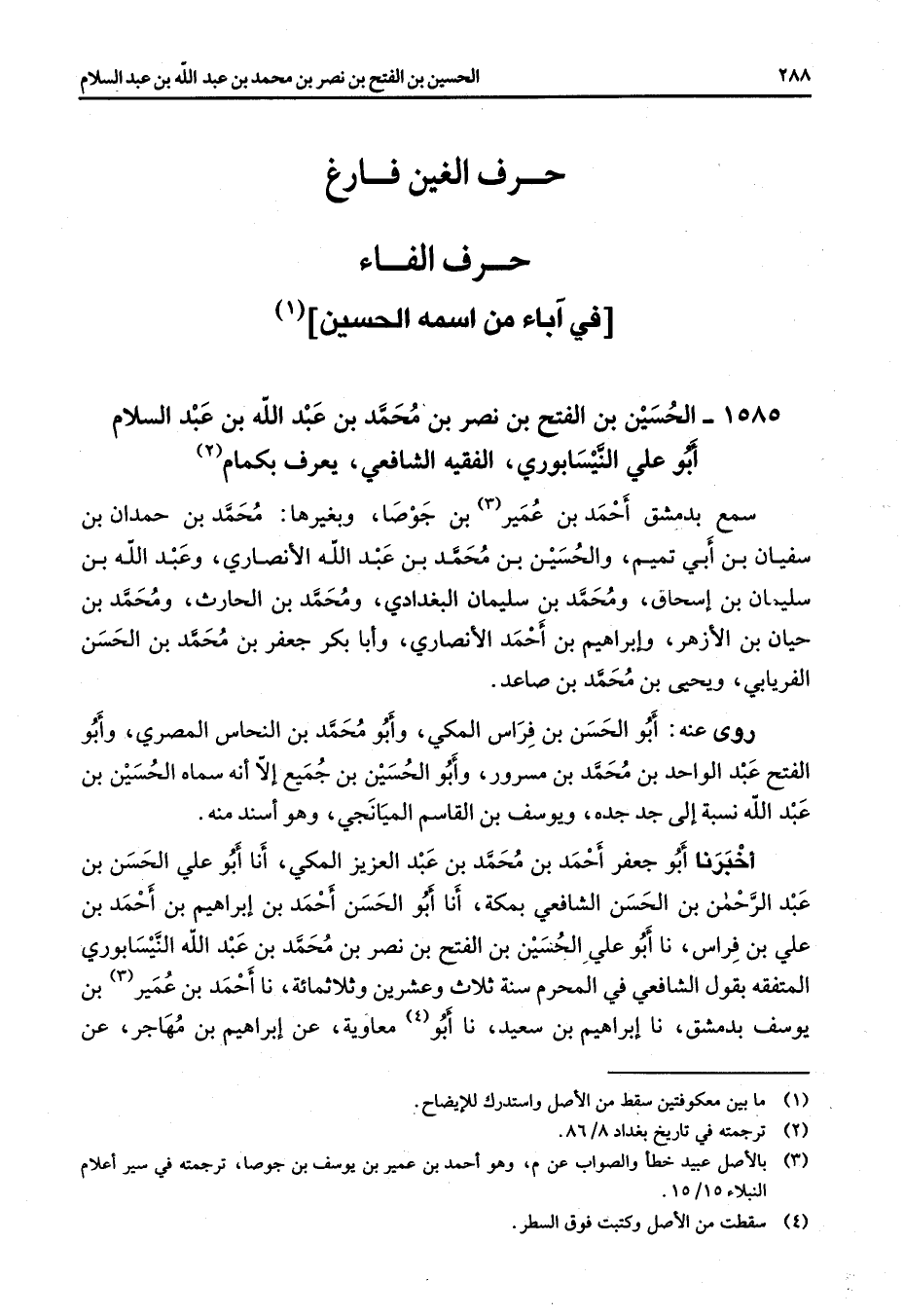 حرف الغين فارغ " " حرف الفاء في آباء من اسمه الحسين " (1)