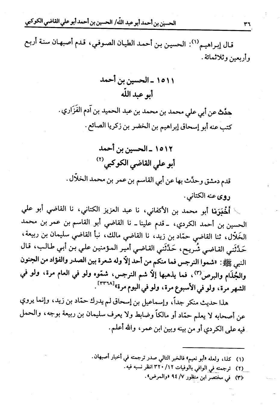 1512 - الحسين بن أحمد أبو علي القاضي الكوكبي (2) قدم دمشق وحدث بها عن أبي القاسم بن عمر بن محمد الخلال