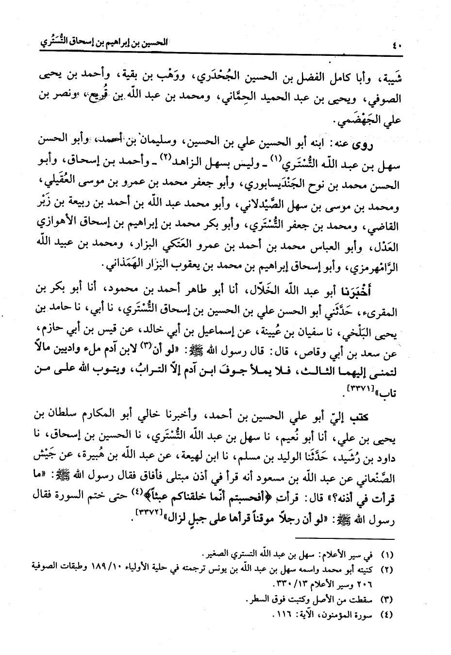 (2) كنيته أبو محمد وأسمه سهل بن عبد الله بن يونس ترجمته في حلية الاولياء 10 / 189 وطبقات الصوفية 206 وسير الاعلام 13 / 330