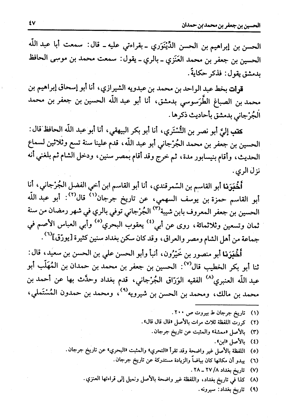 (1) تاريخ جرجان ط بيروت ص 200