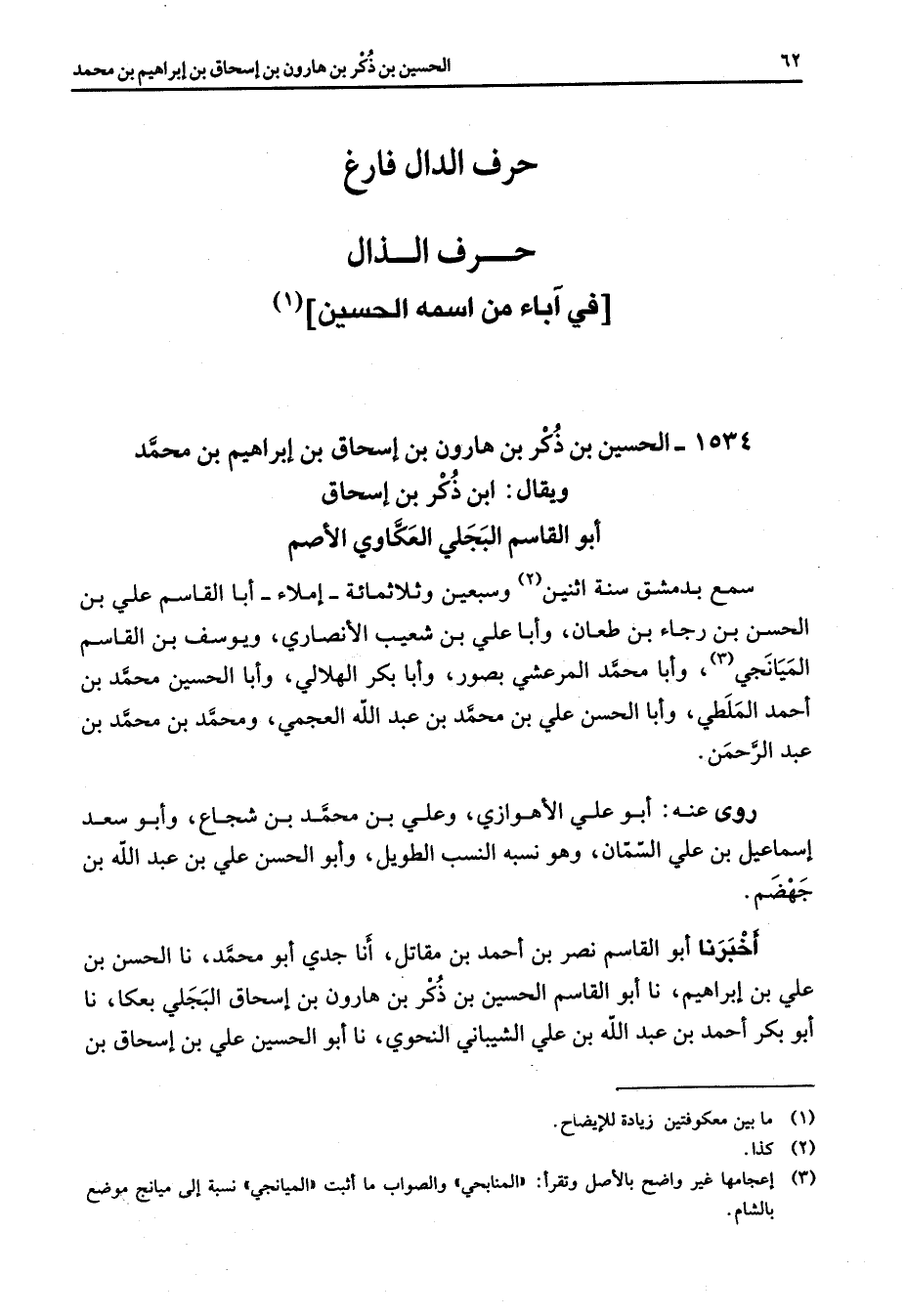 " حرف الدال فارغ " " حرف الذال في آباء من اسمه الحسين " (1)
