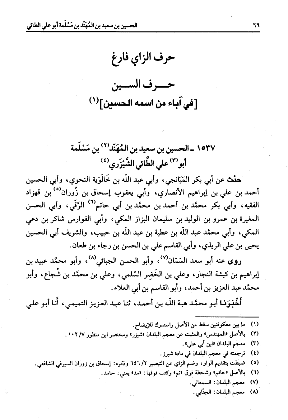 حرف الزاي فارغ " " حرف السين في آباء من اسمه الحسين (1) "