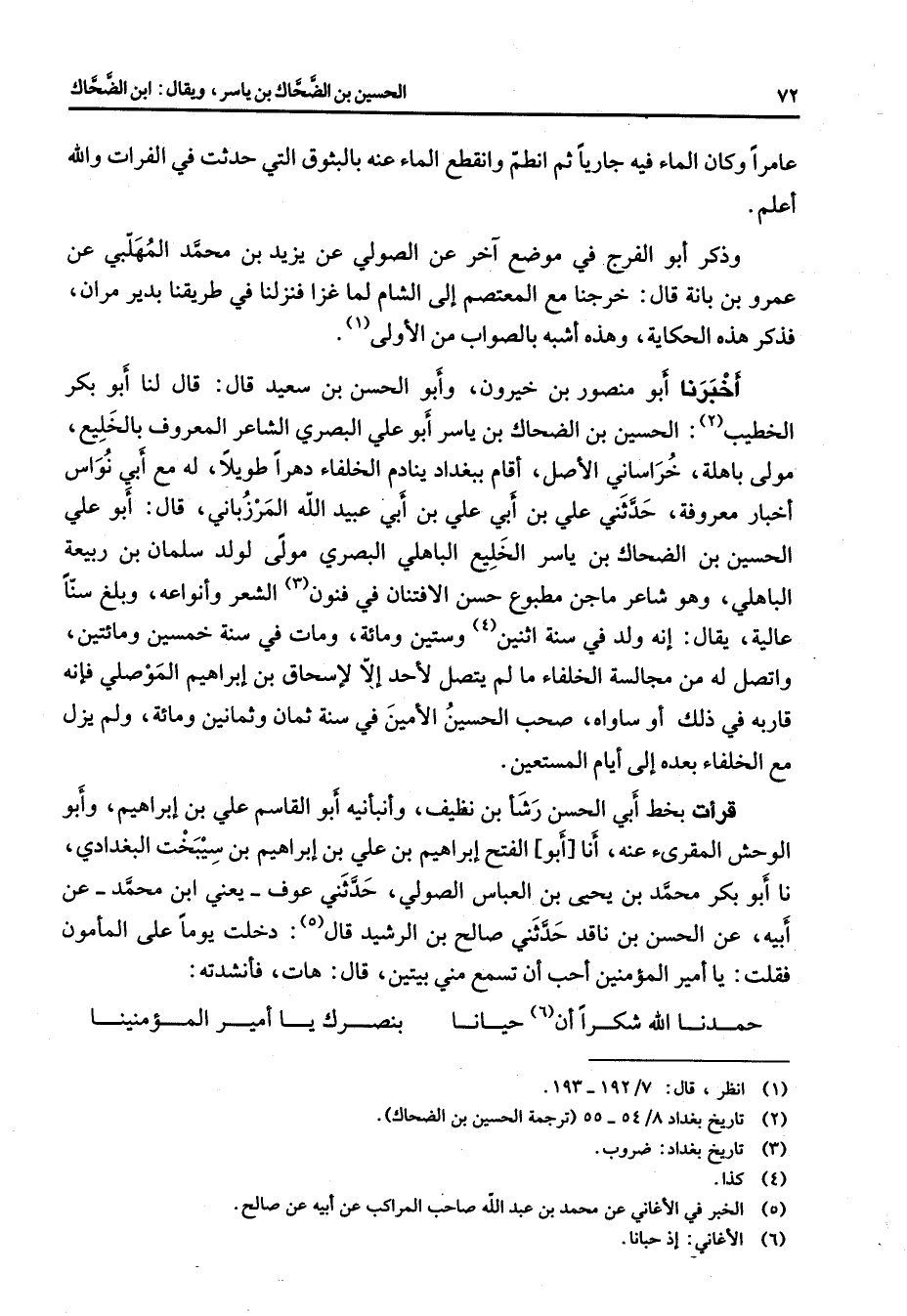 (2) تاريخ بغداد 8 / 54 - 55 (ترجمة الحسين بن الضحاك)