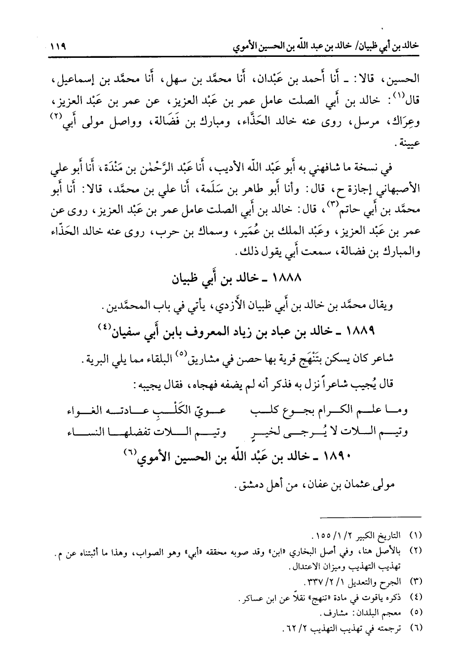 1890 - خالد بن عبد الله بن الحسين الأموي (6) مولى عثمان بن عفان من أهل دمشق