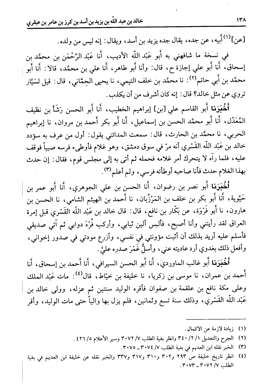 (4) انظر تاريخ خليفة ص 293 و 302 و 310 و 337 والخبر نقله عن خليفة ابن العديم في بغية الطلب 7 / 3072 - 3073