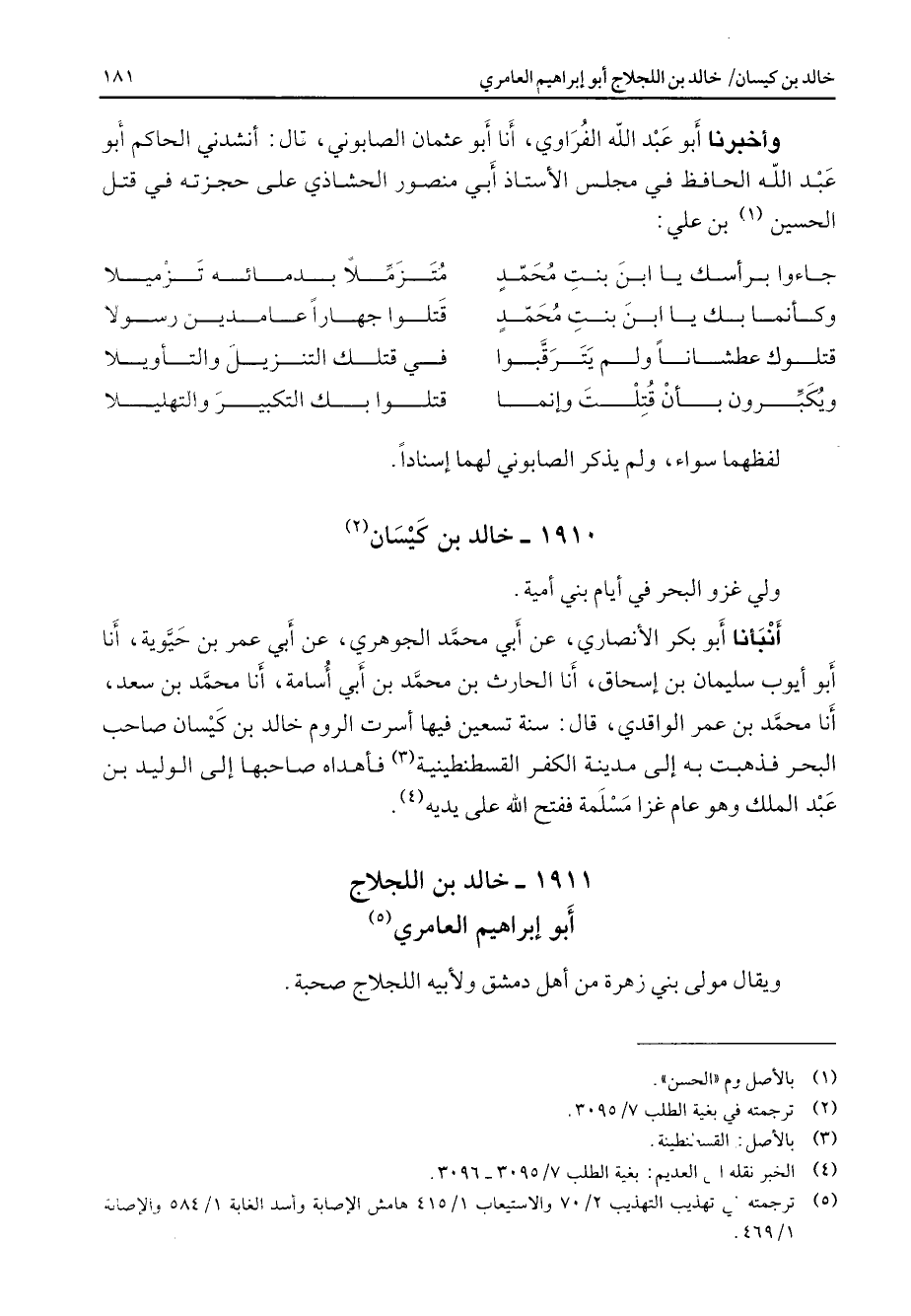 1911 - خالد بن اللجلاج أبو إبراهيم العامري (5) ويقال مولى بني زهرة من أهل دمشق ولأبيه اللجلاج صحبة