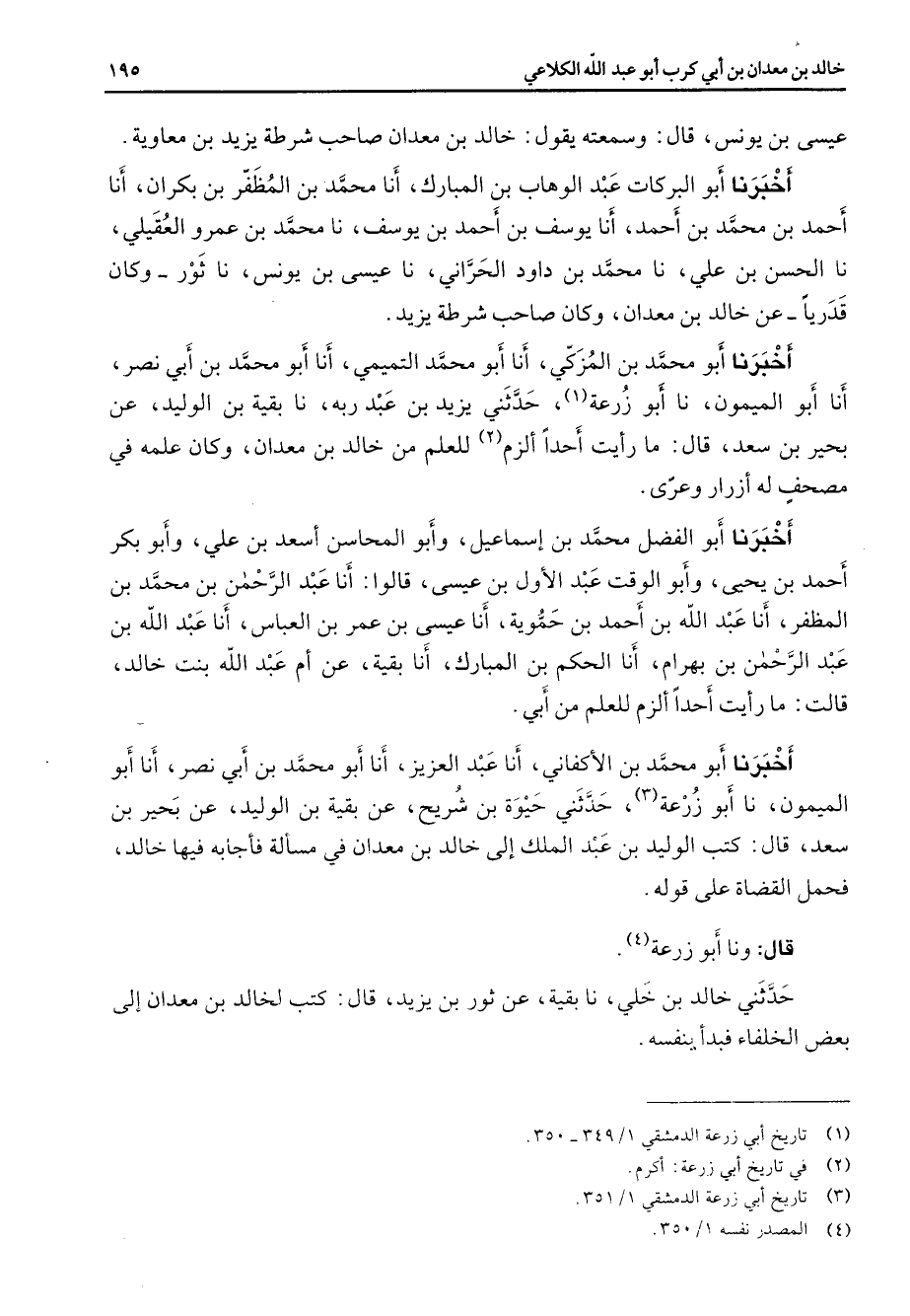 (1) تاريخ أبي زرعة الدمشقي 1 / 349 - 350
