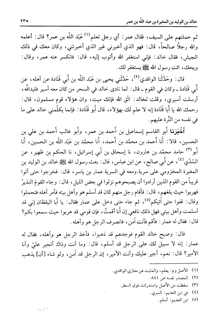 (1) الاصل وم: يعلم والمثبت عن مغازي الواقدي