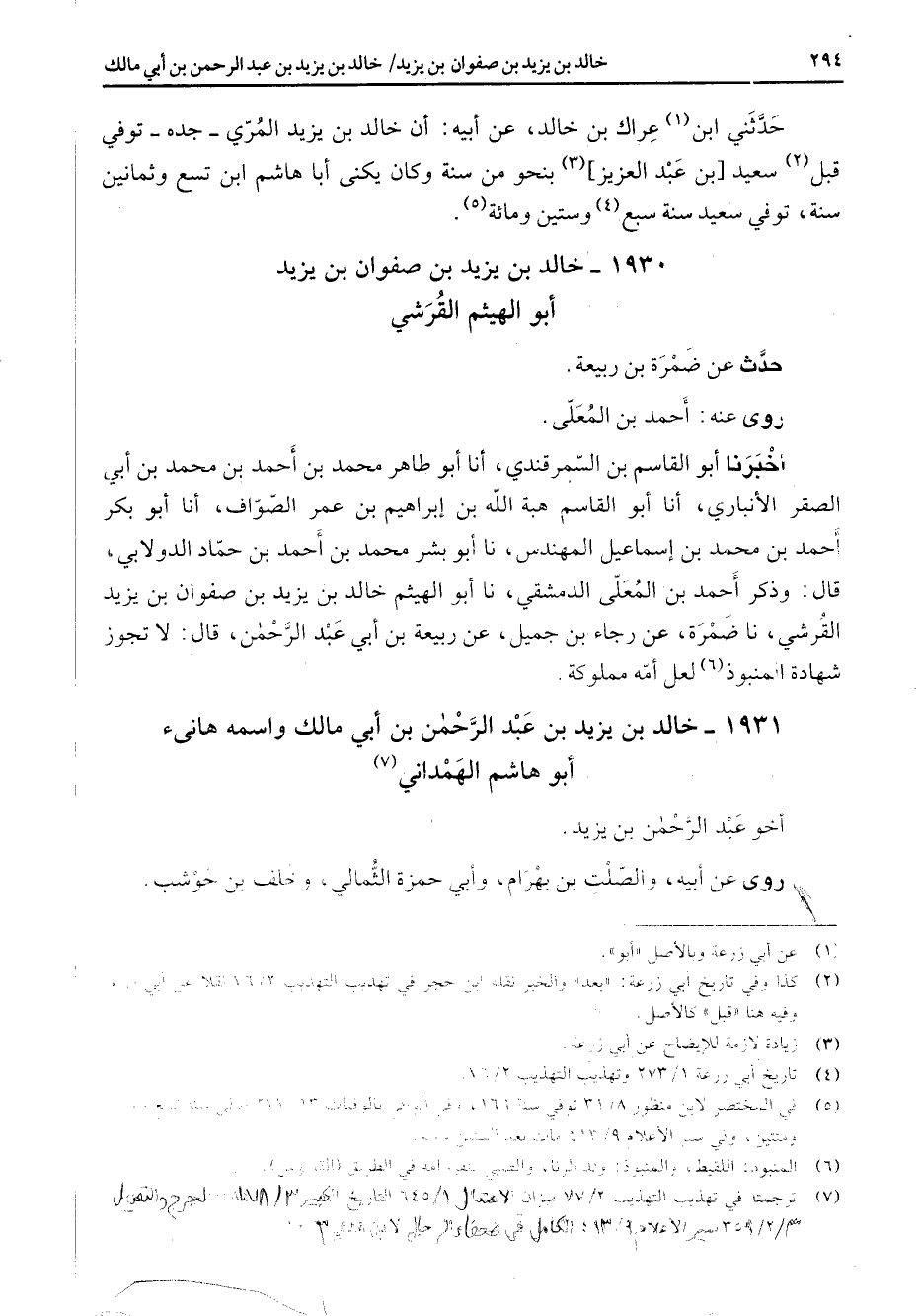 1931 - خالد بن يزيد بن عبد الرحمن بن أبي مالك واسمه هانئ أبو هاشم الهمداني (7) أخو عبد الرحمن بن يزيد روى عن أبيه والصلت بن بهرام وأبي حمزة الثمالي وخلف بن حوشب