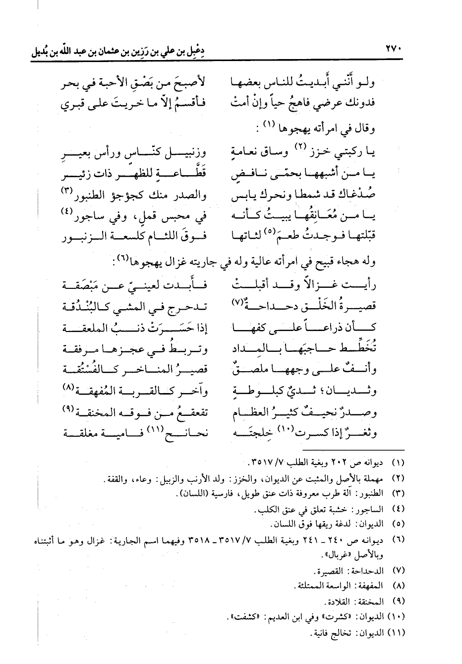 (6) ديوانه ص 240 - 241 وبغية الطلب 7 / 3517 - 3518 وفيهما اسم الجارية: غزال وهو ما أثبتناه وبالاصل " غربال "