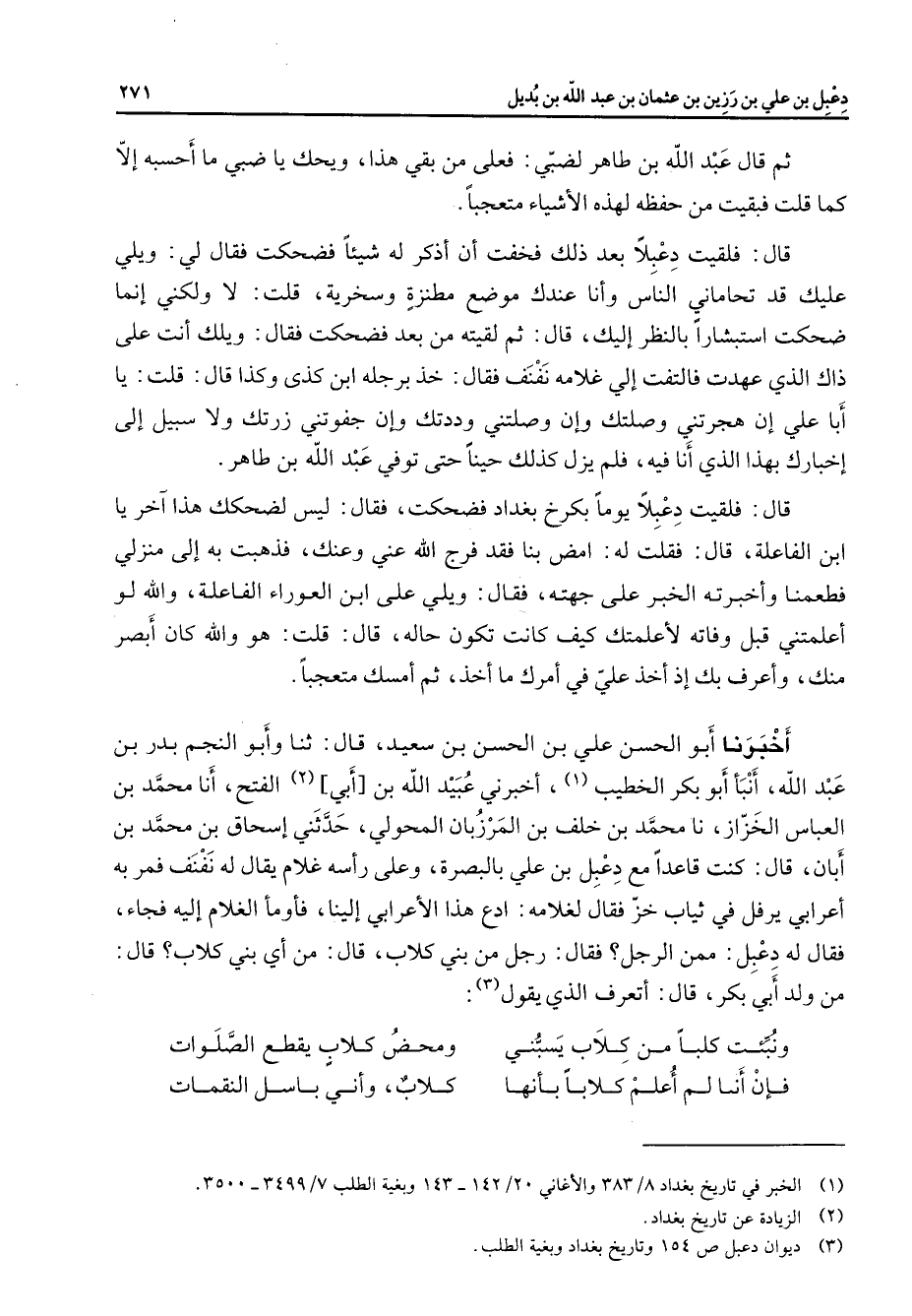 (3) ديوان دعبل ص 154 وتاريخ بغداد وبغية الطلب