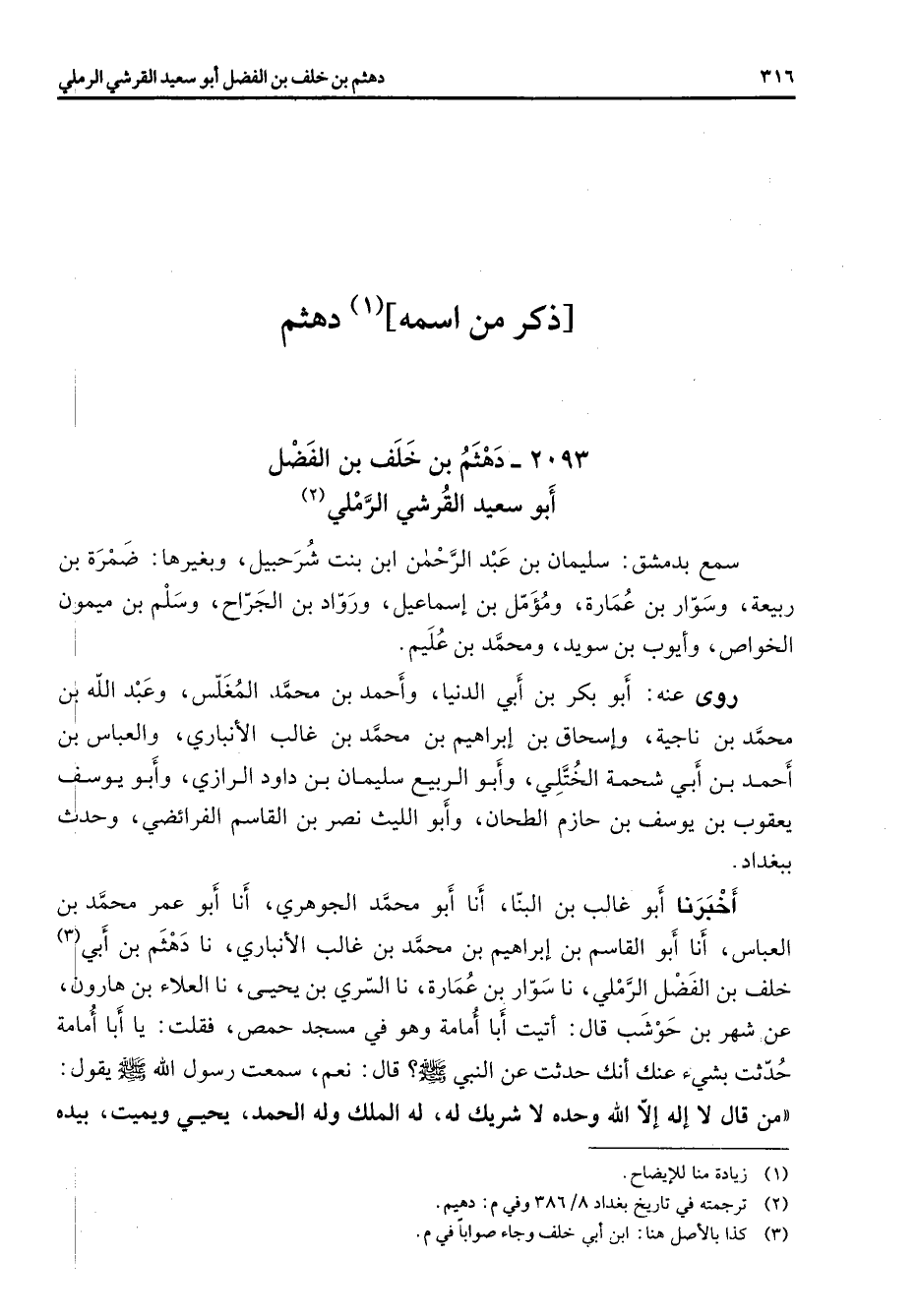(2) ترجمته في تاريخ بغداد 8 / 386 وفي م: دهيم