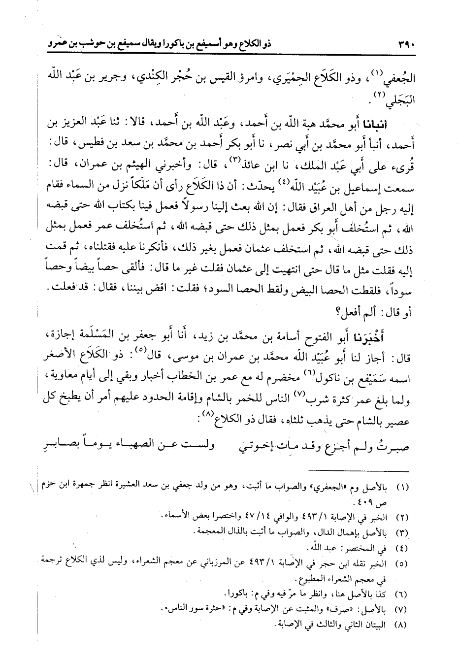 (8) البيتان الثاني والثالث في الاصابة