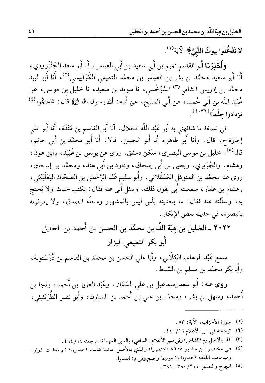 2022 - الخليل بن هبة الله بن محمد بن الحسن بن أحمد بن الخليل أبو بكر التميمي البزاز سمع عبد الوهاب الكلابي وأبا علي الحسن بن محمد بن القاسم بن درستوية وأبا بكر محمد بن مسلم بن السمط روى عنه أبو سعد إسماعيل بن علي السمان وعبد العزيز بن أحمد ونجا بن أحمد وسهل بن بشر ومحمد بن علي بن أحمد بن المبارك وأبو نصر الطريثيثي