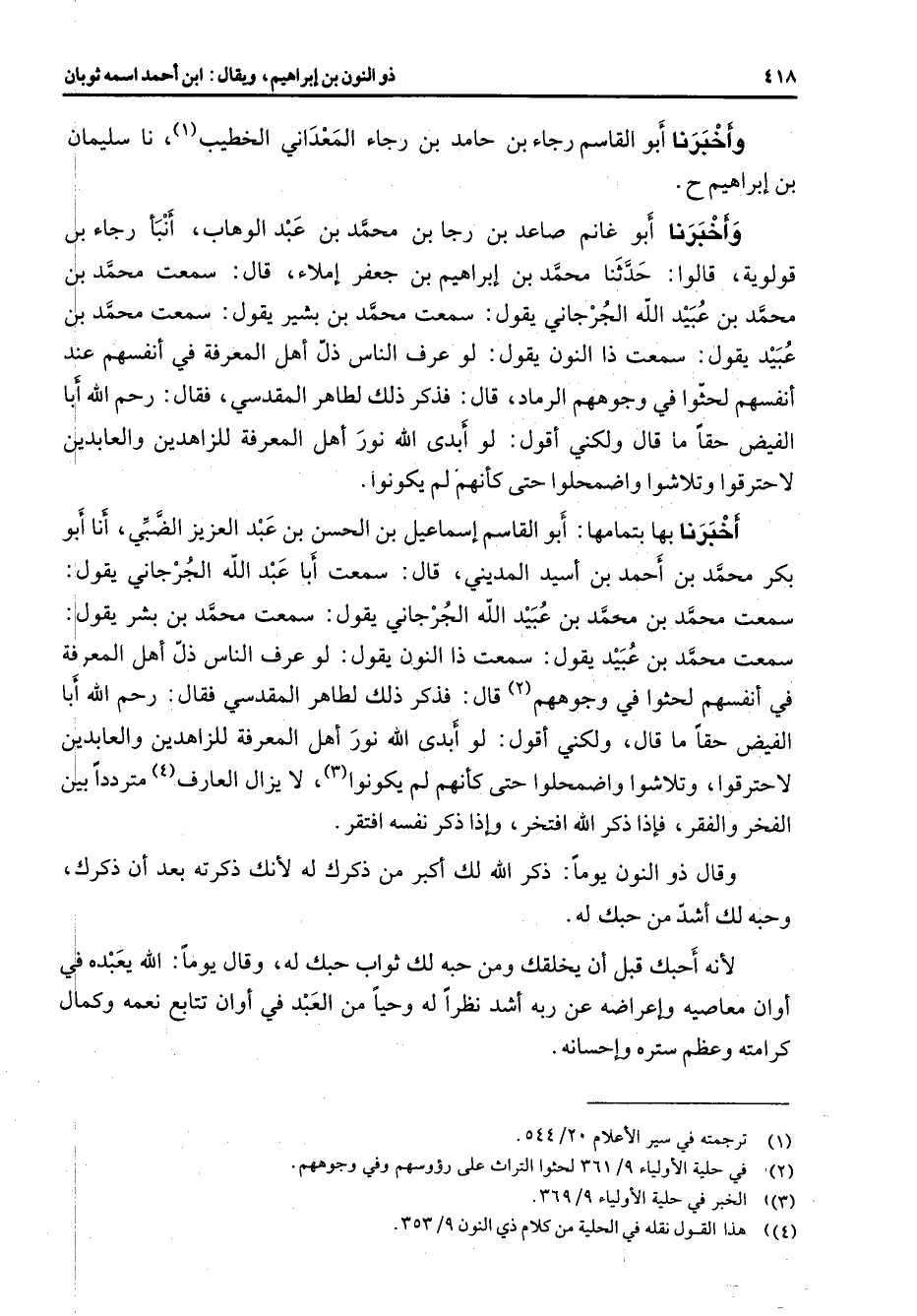 (4) هذا القول نقله في الحلية من كلام ذي النون 9 / 353