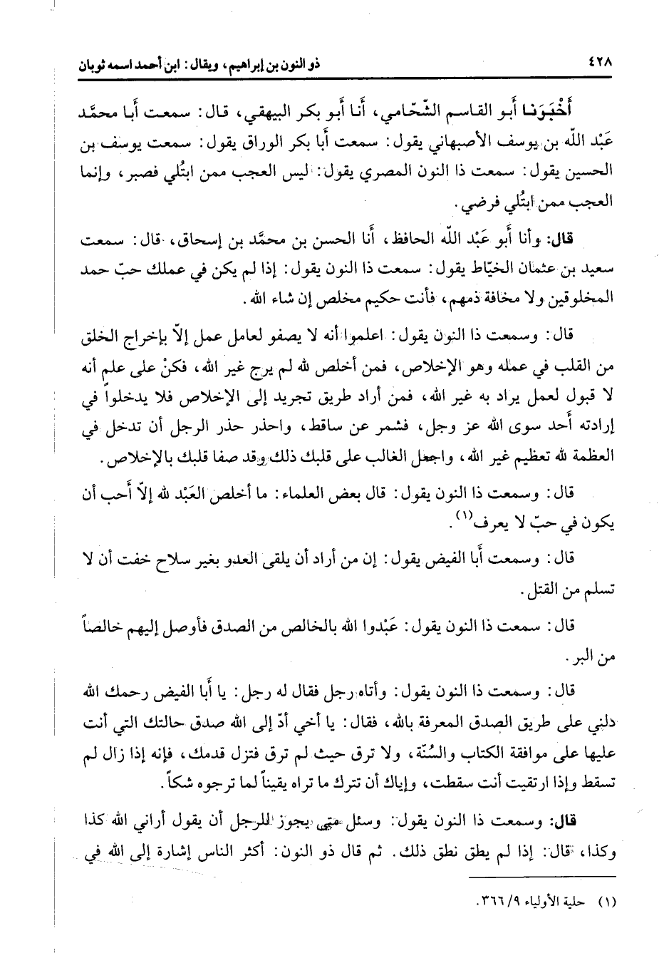 (1) حلية الاولياء 9 / 366